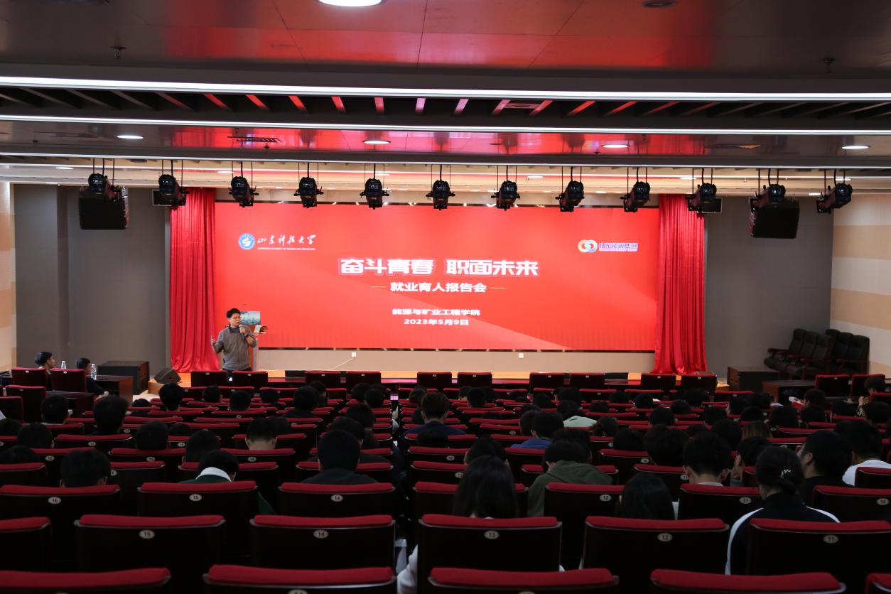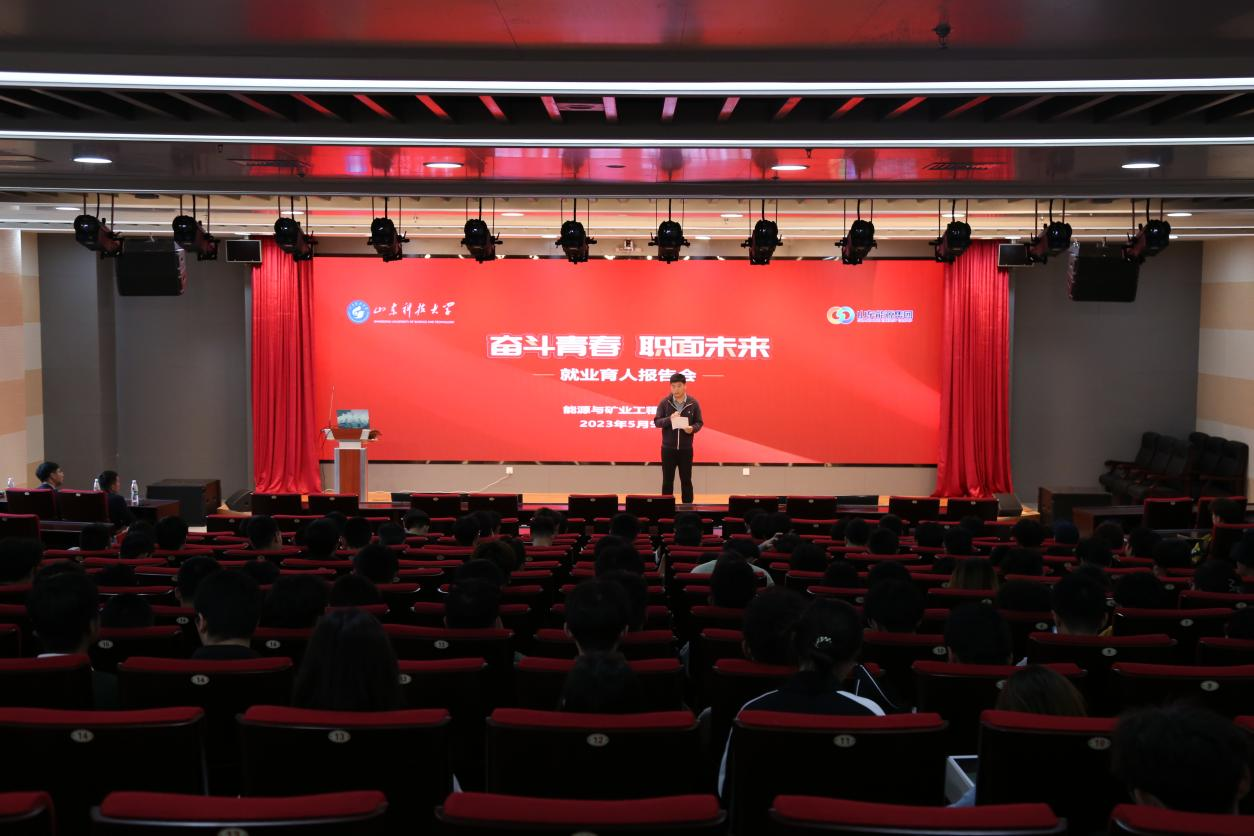 5月9日,为深入学习贯彻党的二十大精神,落实党中央、国务院、山东省委、省政府以及山东科技大学关于促进高校毕业生就业的决策部署,引领学生科学开展职业生涯规划,捷报足球 邀请山东能源集团柳研青、白昌赫和李进三位优秀校友代表来校举办专题报告会。捷报足球 辅导员宗彩建主持,采矿工程专业全体同学参加。