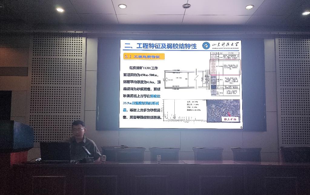 李云飞介绍,本次研究生学术微沙龙活动旨在为研究生提供一个学术交流的平台,加强同学们专业素养,激发学生们在科学研究方面的热情,营造良好的学术氛围。活动中,周凯作题为“弱胶结含厚砾岩层覆岩联动失稳机制及安全开采技术”的专题汇报,与会人员结合报告内容展开了交流研讨。