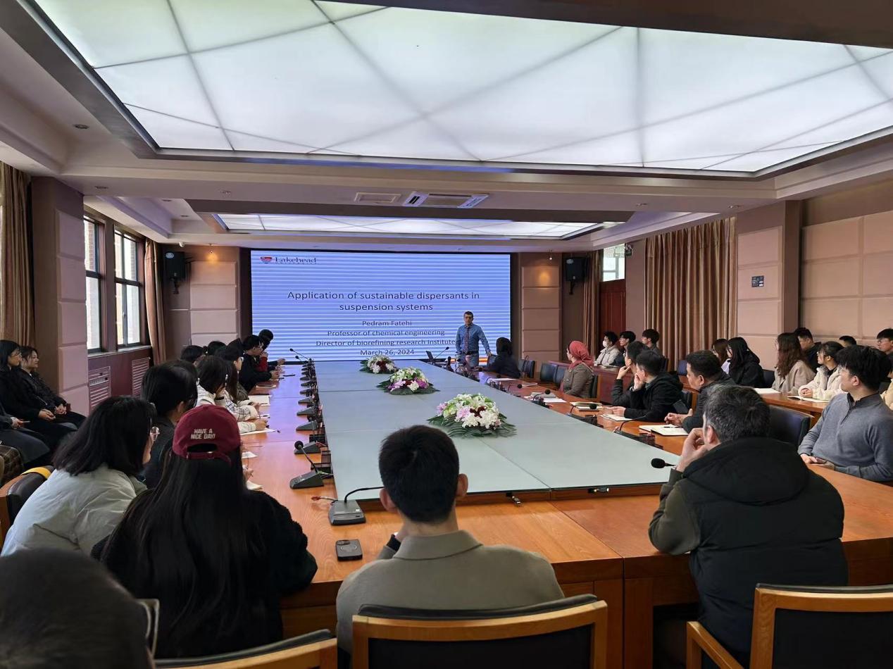 Pedram Fatehi教授为捷报足球 师生作了题为《Application of sustainable dispersants in suspension systems》的学术报告,Pedram Fatehi教授首先向大家介绍了湖首大学和本人课题组的基本情况,展示了课题组的实验室布局、设备情况和人员组成。重点讲解了木质素基分散剂的研究背景、原料来源、制备与改性工艺、分散机理以及木质素基分散剂在水煤浆、建材和水性涂料等领域的应用情况。报告会后,参会师生就木质素基分散剂与其他研究方向的交叉融合、教师访学和学生联合培养等问题与Pedram Fatehi教授开展了细致的交流研讨,为后续进一步开展学术合作和国际交流奠定了良好的基础。(通讯:柳慧敏 责编:陈冲 审核:许琳)