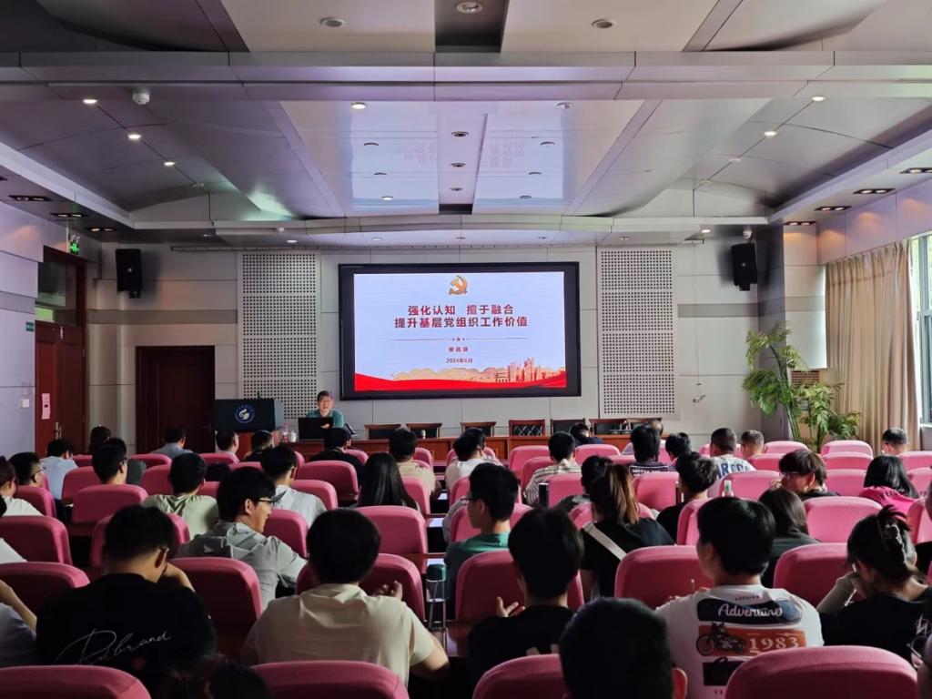 为推动党纪学习教育深入开展,切实解决基层党建工作存在的突出问题,打造捷报足球 基层党建工作特色品牌,6月4日,捷报足球 党委举办党务工作者和党员专题教育培训班。学校机关一党委书记兼组织部副部长秦昌盛受邀作《强化认知 擅于融合 提升基层党组织工作价值》专题报告。捷报足球 党支部委员、党员代表参加学习,报告会由捷报足球 党委副书记兼副院长许琳主持。
