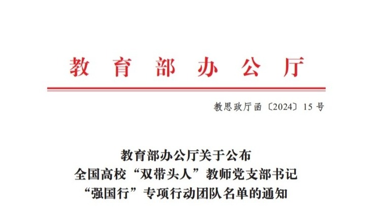 近日,教育部办公厅印发《关于公布全国高校“双带头人”教师党支部书记“强国行”专项行动团队名单的通知》(教思政厅函〔2024〕15号),捷报足球数据 重点实验室党支部与资源工程系党支部成功入选,彰显了捷报足球 在党建工作方面的卓越成果。