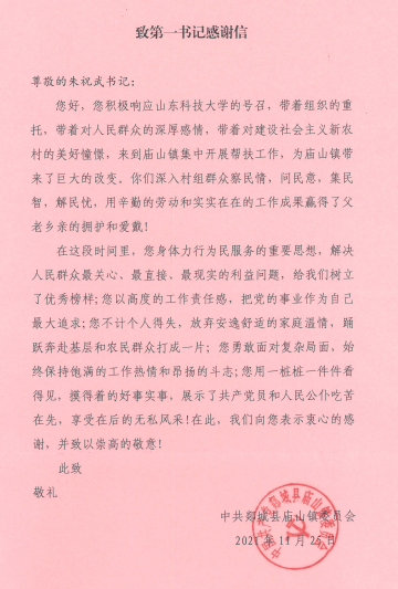 近日,捷报足球 党委收到临沂市郯城县人民政府、庙山镇党委等部门发来的表彰文件和感谢信,对捷报足球 党政办公室主任朱祝武同志在挂职“加强农村基层党组织建设”工作队省派队员期间的突出表现给予嘉奖。