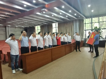 最后,大家在党旗下庄重宣誓,重温入党誓词。