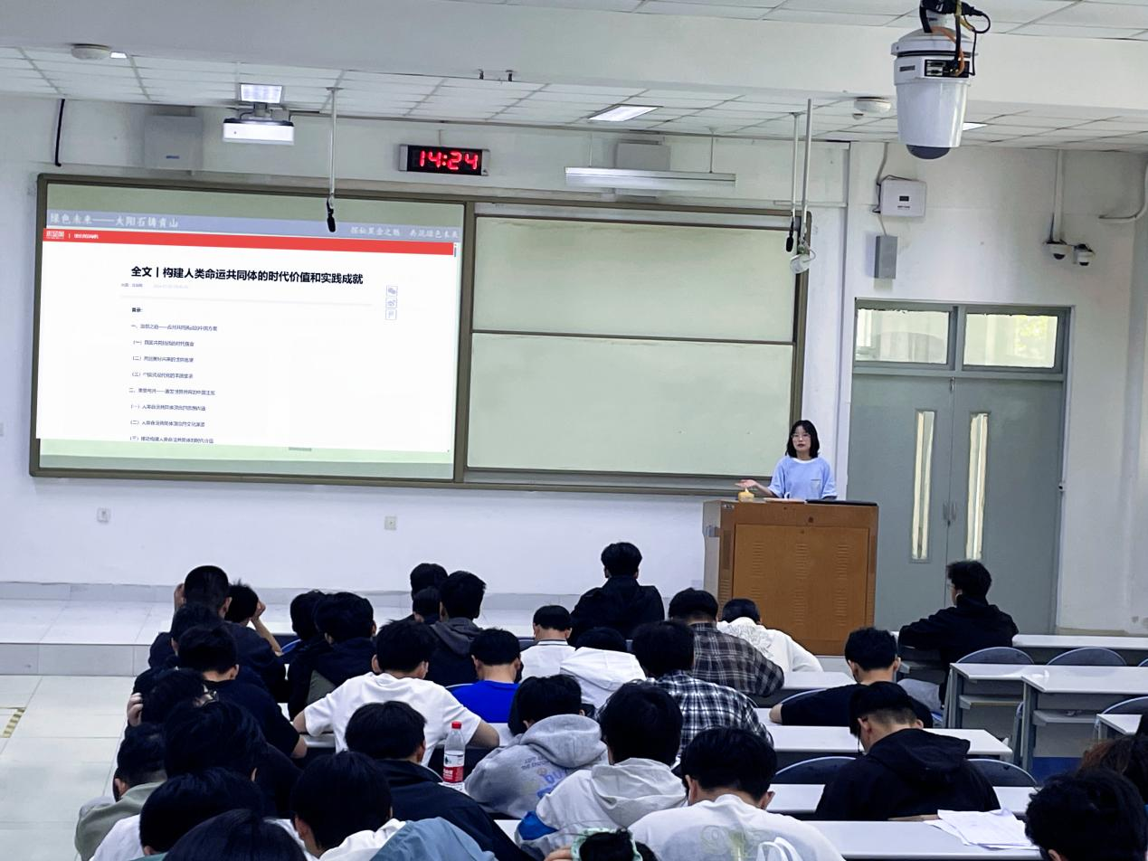 活动中,团委老师围绕构建人类命运共同体的核心理念,结合当前国际形势和中国的发展实际,为全院团员带来了一场生动而深刻的讲座。老师详细阐述了命运共同体的内涵、意义以及中国在推动构建人类命运共同体中的积极作用,引导团员们深刻认识到中国与世界紧密相连、休戚与共的关系。