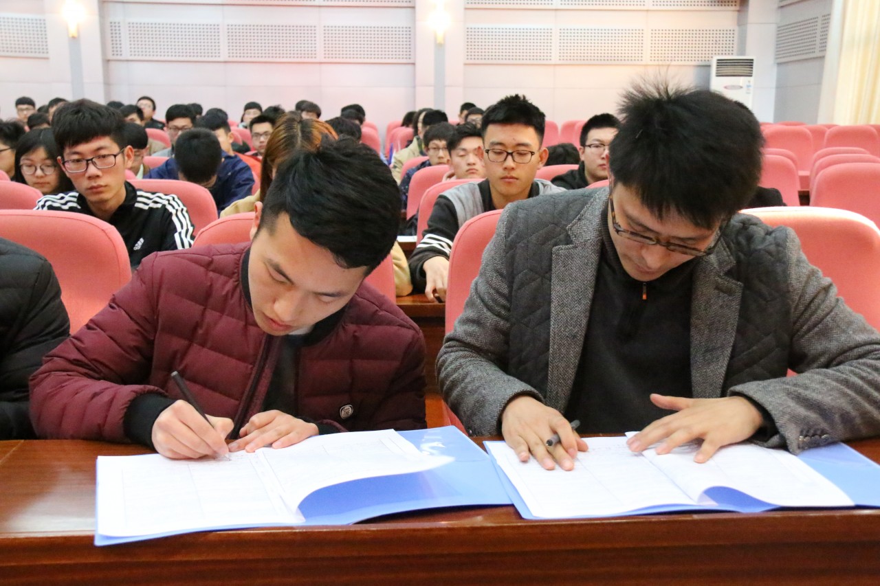 在101报告厅举行班委目标责任制启动仪式。学生处教育管理科科长姜瑞学、校团委张璐老师、党委副书记兼副院长穆玉兵、团委书记马鹤及捷报足球
