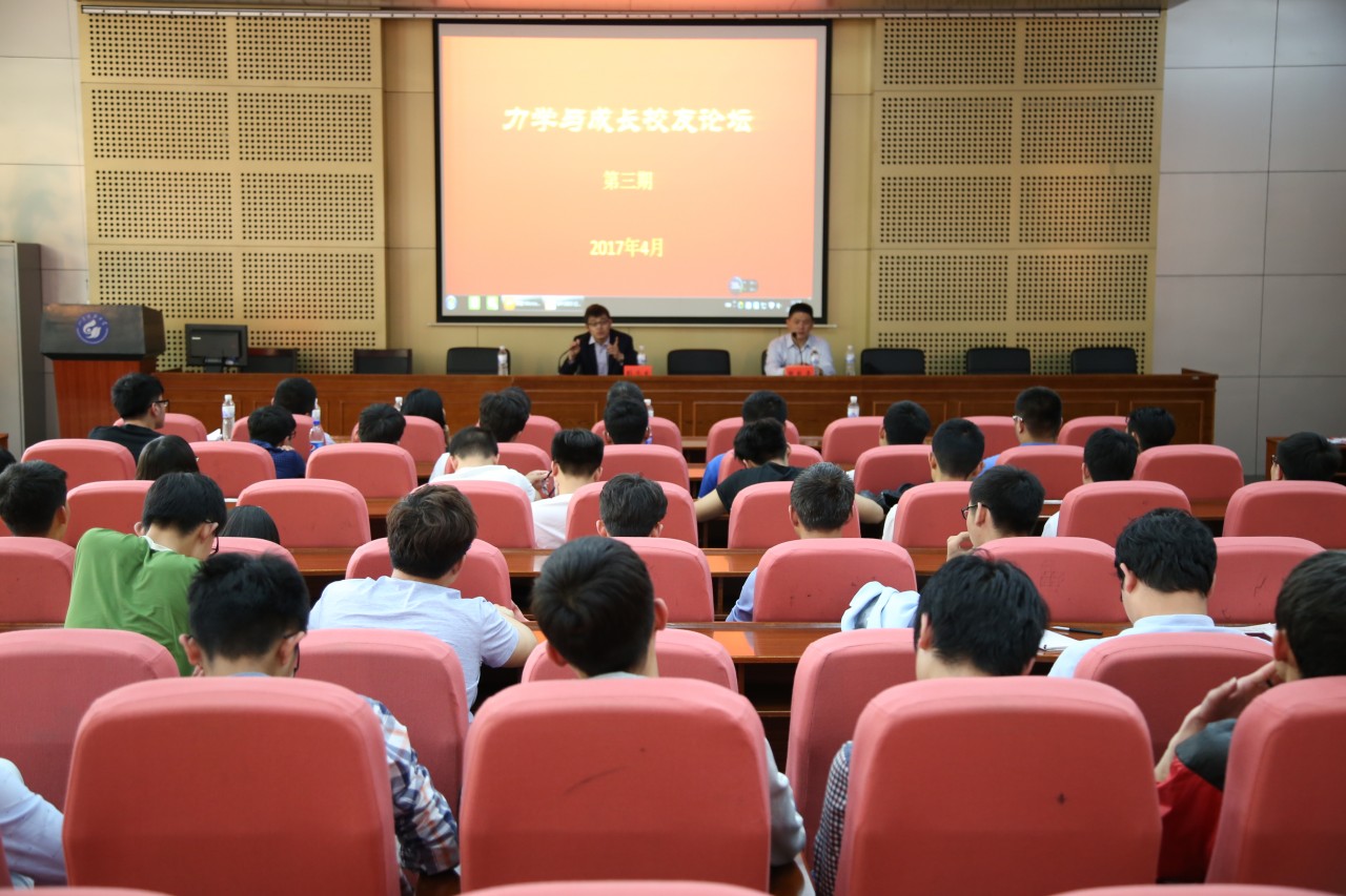 于101报告厅成功举办第三期“力学与成长”校友论坛。本次论坛邀请了工程力学2003级优秀校友代表——山东大学张乾青副教授、北京理工大学彭志龙副教授担任主讲人。