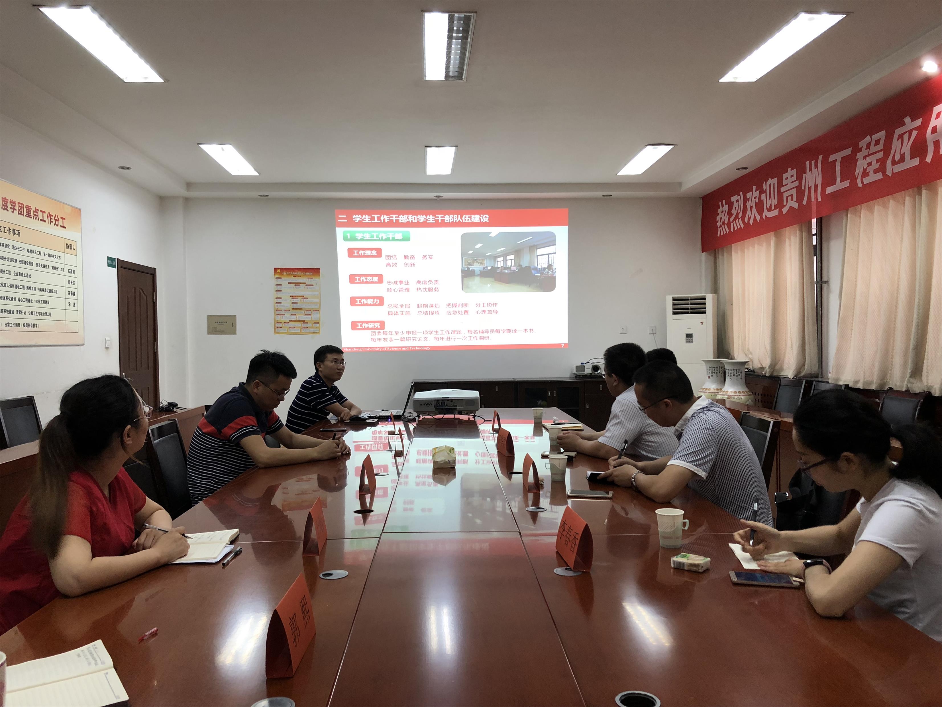 7月12日,贵州工程应用技术捷报足球 矿业工程捷报足球 院长汪华君一行来捷报足球数据 参观交流。捷报足球 团委书记马鹤、辅导员潘刚、郭熙、于海洋参加座谈。