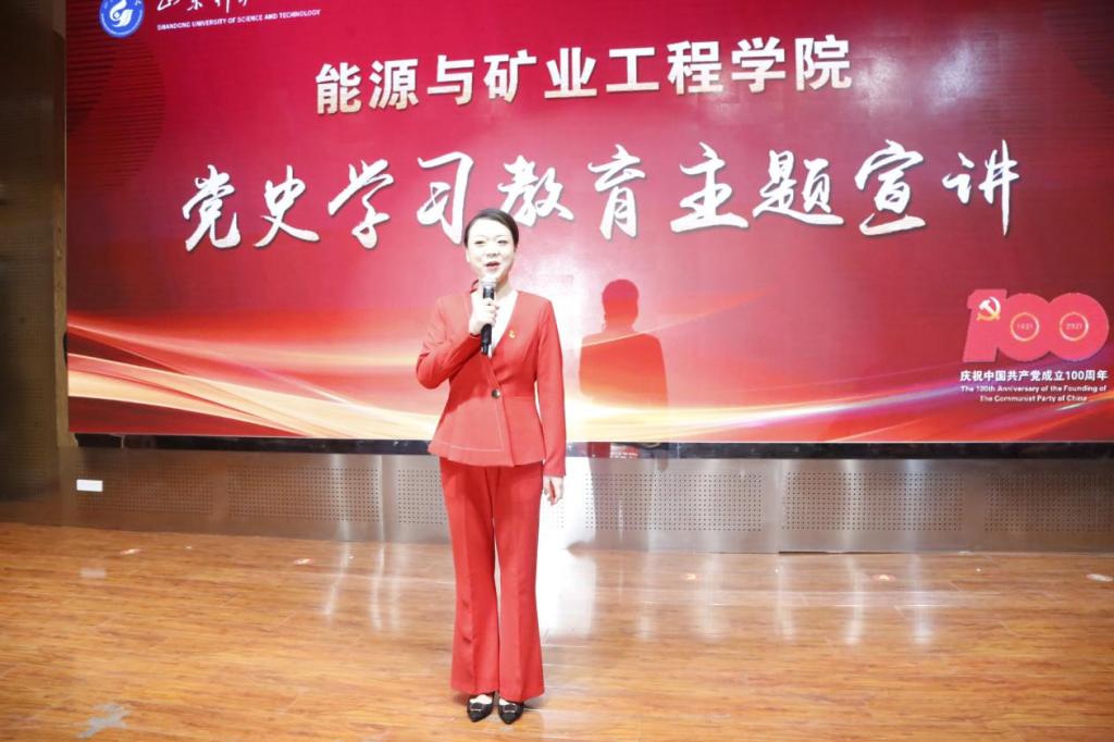 4月27日,捷报足球 在J9-144报告厅举办党史学习教育主题宣讲,捷报足球 邀请山东科技大学“百年党史百人讲”辅导员党史宣讲团开展宣讲,捷报足球 师生代表进行现场学习。