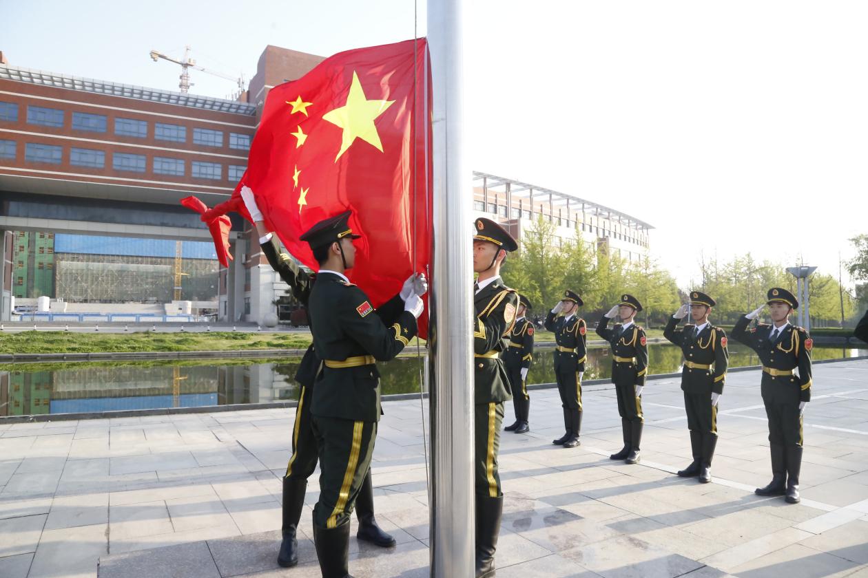 伴着初升的朝阳,升国旗仪式正式开始。国歌奏响,在慷慨激昂的《义勇军进行曲》中,鲜艳的五星红旗徐徐升起,全体师生庄严肃立,面向国旗行注目礼。五星红旗在晨曦中随风飘扬在山东科技大学的上空,同学们在肃穆的气氛中共同感受着党史的厚重和革命先辈崇高的精神。