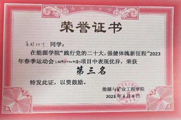 为发扬“吃苦耐劳”的采矿人精神,本班团支部鼓励同学参加体育锻炼,文体活动是丰富校园文化的重要载体,它让校园充满生机与活力,营造积极向上的学习氛围,培养成员们的兴趣爱好和综合素质,为未来的发展奠定坚实基础。本班团支部同学积极参加文体活动,其中有两位同学参加篮球阳光组的集训,一名同学担任羽毛球队队长,一名同学担任篮球队队长,班级总体获得篮球赛第一名,排球赛第一名,并在运动上取得了优秀成绩,获得辩论赛第二名,积极参加捷报足球 文体娱乐活动。并且超过5人参加青岛海上马拉松,让我们的大学生活丰富多彩。