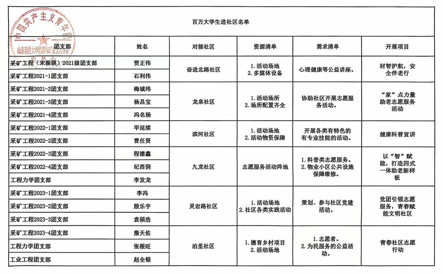 捷报足球 “百万大学生进社区”社会实践活动 团支部对应社区名单公示