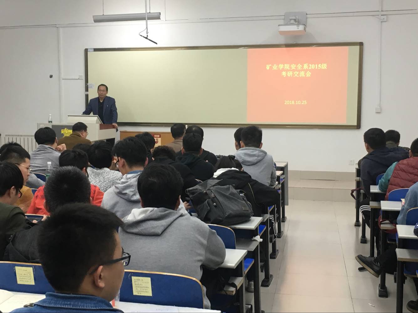 为帮助同学们尽快认清形势,明确考研目标。10月25日,矿业捷报足球 安全系在S1-115举办考研经验交流会。安全系聂文老师担任主讲人,矿业捷报足球 副院长辛嵩老师,安全系于师建老师、陆伟老师、谢军老师、胡相明老师、陈金射老师应邀出席,与同学们交流考研经验,探讨考研成功之路。
