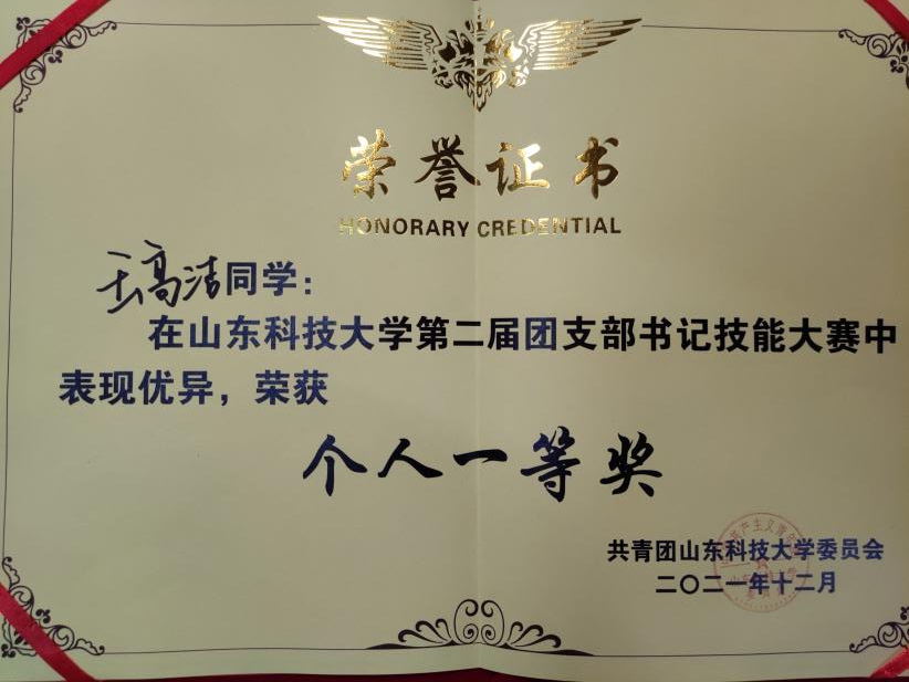 1221日,山东科技大学第二届团支部书记技能大赛落下帷幕。捷报足球 荣获大赛团体一等奖,工程力学20183班团支书王高洁荣获“青春有样 奔赴梦想”团支部风采展示与现场答辩一等奖、工程力学20191班王克成荣获“请党放心 强国有我”精品团日活动二等奖、工业工程20182班韩新悦荣获“奋斗的青春最美丽”主题微团课三等奖。