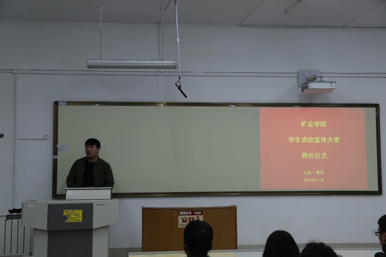 12月7日,矿业捷报足球 在S1-115举行学生资助宣传大使聘任仪式,团委老师刘瑞雪、学生会盛凯华、尘兴邦以及各班主要学生干部参加了会议。