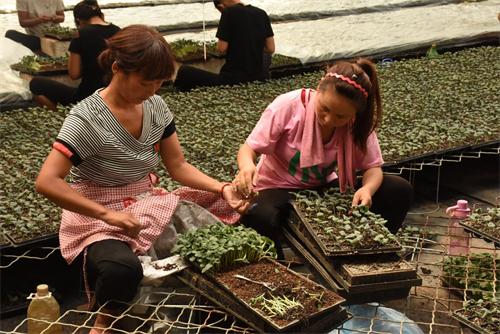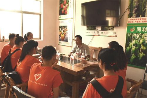 带着对新型农业生产发展的好奇,团队成员们走过十几公里的乡间公路,抵达同利农业科技育苗厂,并在育苗厂王经理的带领下,参观种苗种植大棚,与生产工人进行面对面接触,感受科技迅猛发展所带来的新型农业生产技术的魅力与神奇,见证农业生产技术的发展与进步。种植大棚内,王经理热心地为队员们介绍种苗的生长的环境、发育过程以及巧妙的嫁接技术,队员们也集中注意力,认真观摩,虚心学习,通过不断咨询了解了大棚夏季降温措施、冬季自动测温原理以及防虫害技术等很多大棚育苗技术知识。学习之余,大家充分感受到了当地热情好客、待人友善的淳朴民风。经过一上午的参观,队员们真实感受到大棚种苗生产的科学化与智能化,切身体会到近年来农业生产的巨大进步。当队员们得知新型农业生产技术使种苗的产量得到了很大的提高时,更为王经理及其员工的辛勤付出感到开心与敬佩。
