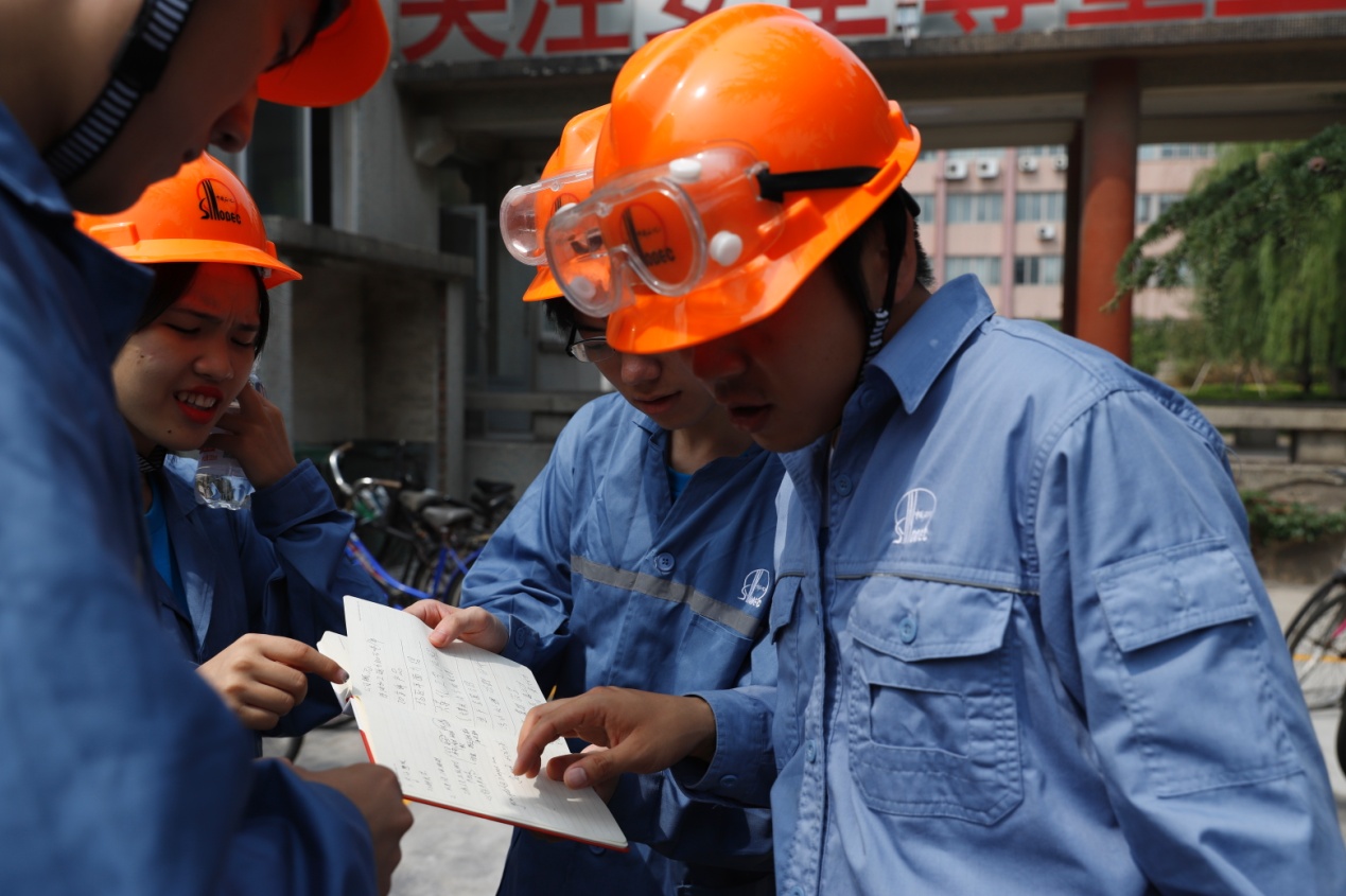 7月26日,团队成员们再次来到青岛石化,虽然是本次社会实践的最后一天,但队员们依旧热情高涨,无惧高温高湿的环境,出色地完成了收官任务。