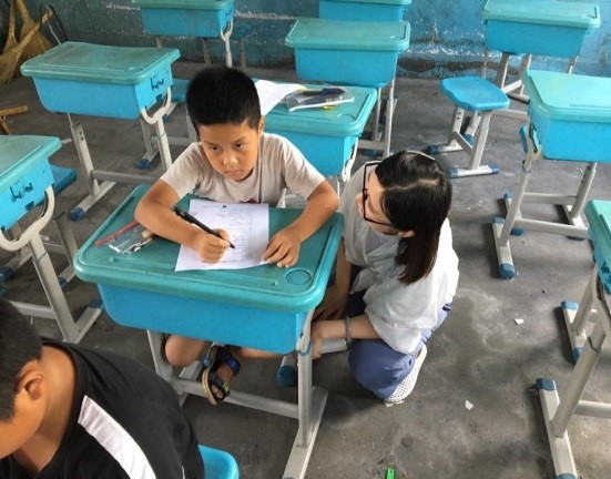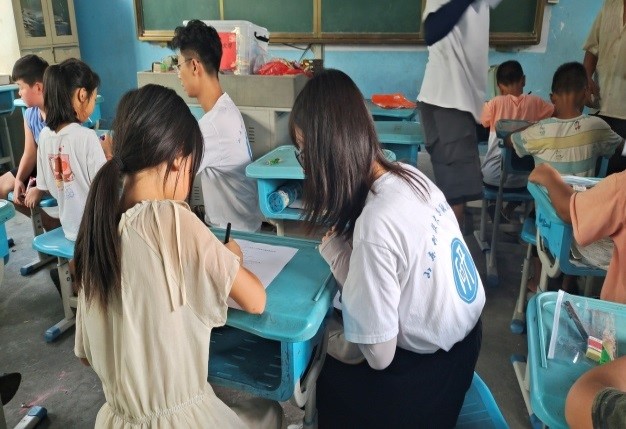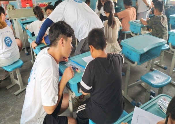 当天下午调研团队全体成员再次来到了北毛小学,这次我们受托带来了山科研招办要送给孩子们的文具和零食。毛老师受邀同我们一起给孩子们发放了文具。之后,为了调研当地留守儿童生活情况,组织孩子们填写了调查问卷,通过这种方式了解孩子们内心的需求。通过中途的交流,我们大致了解到多数的孩子都是留守儿童,且有的孩子特别羞涩内向,他们大多都在表露对父母的思念,这些都是长期缺乏父母陪伴的表现,希望通过我们这次的引导和教育能对孩子们的未来学习生活带来帮助。队员们辅导孩子们做问卷调查的同时,也积极与他们聊天鼓励他们好好学习,气氛十分活跃。