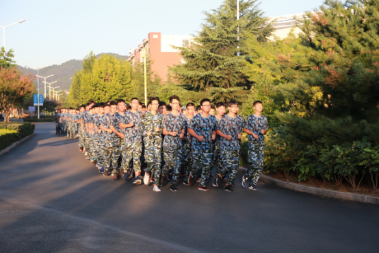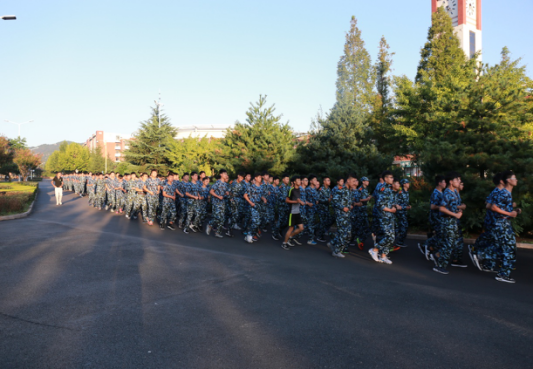在教官的一声令下后,各个连队迅速跑动起来。脚步刚健有力,身形坚毅挺拔,一队又一队的军装绿铺展在校园的林荫道上,融入在清晨的光辉中。嘹亮的口号,彰显矿院人振奋人心的气势;整齐的步伐,蕴含矿院人严谨有序的品格。教官全程陪同指导,维持队伍秩序,同学们也努力按照教官的指令标准地迈出每一步。一时间,他们是这个校园里最靓丽的风景,是人群中最有生机与活力的部分。远方传来有节奏的脚步声,跳动的身影谱写出大地上最美的音符。