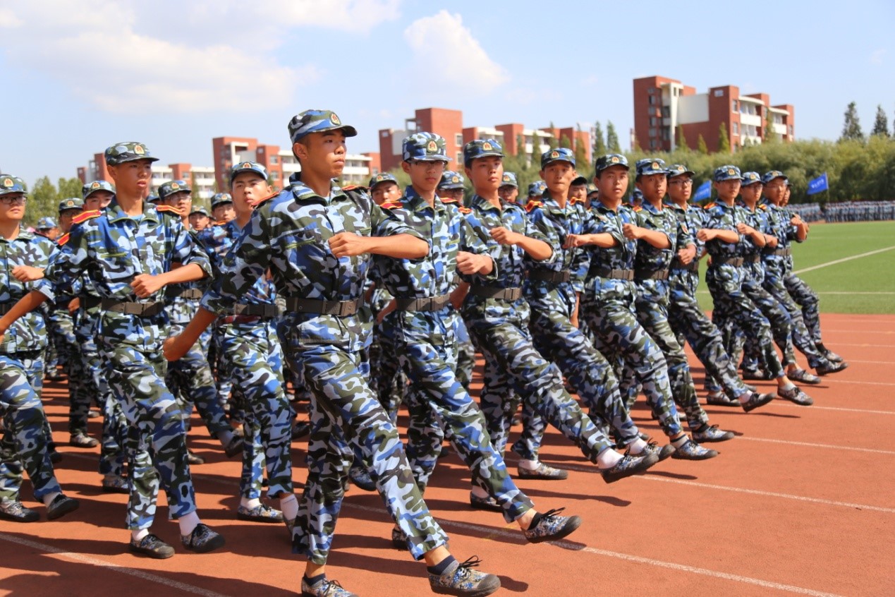 2017级新生整装待发,迎接绿茵场上的最新挑战——军训汇演。