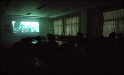 电影放映过程中全场肃穆安静,银幕中不断晃动的镜头,黑白的寒冷色调,南京城的断壁残垣就这样呈现在同学们眼前。面对着一幕幕令人愤慨的场面,体会到受难同胞的苦难经历,不少同学眼中都泛起了泪花。