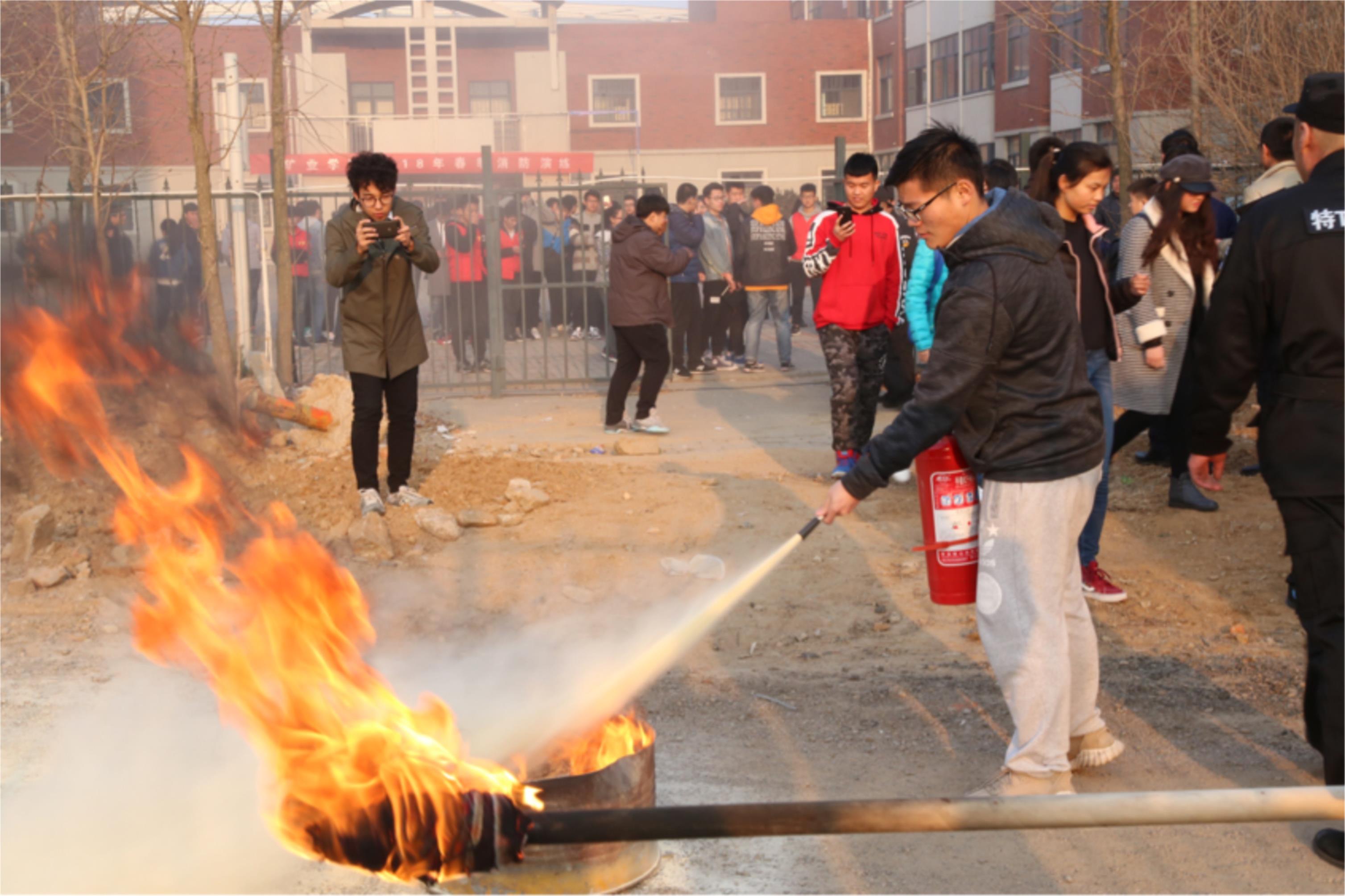 活动伊始,王春暖对公寓火灾防范、遇到火灾时的应急处理措施、消防器材的使用等知识进行了现场讲解,他说,火势灾情蔓延速度特别快,必须提高安全消防意识,切实增强自救能力。对校园火灾防范与应急处理,他提出了两点要求:一是学生要严格遵守公寓相关安全条例,严禁使用大功率电器、不合格电器;二是在校内遇到火情时要及时拨打校园火灾电话或联系消防部门。认真倾听相关讲解后,演练开始进行,同学们按照步骤操作灭火器,成功将燃起的浓烟大火扑灭。