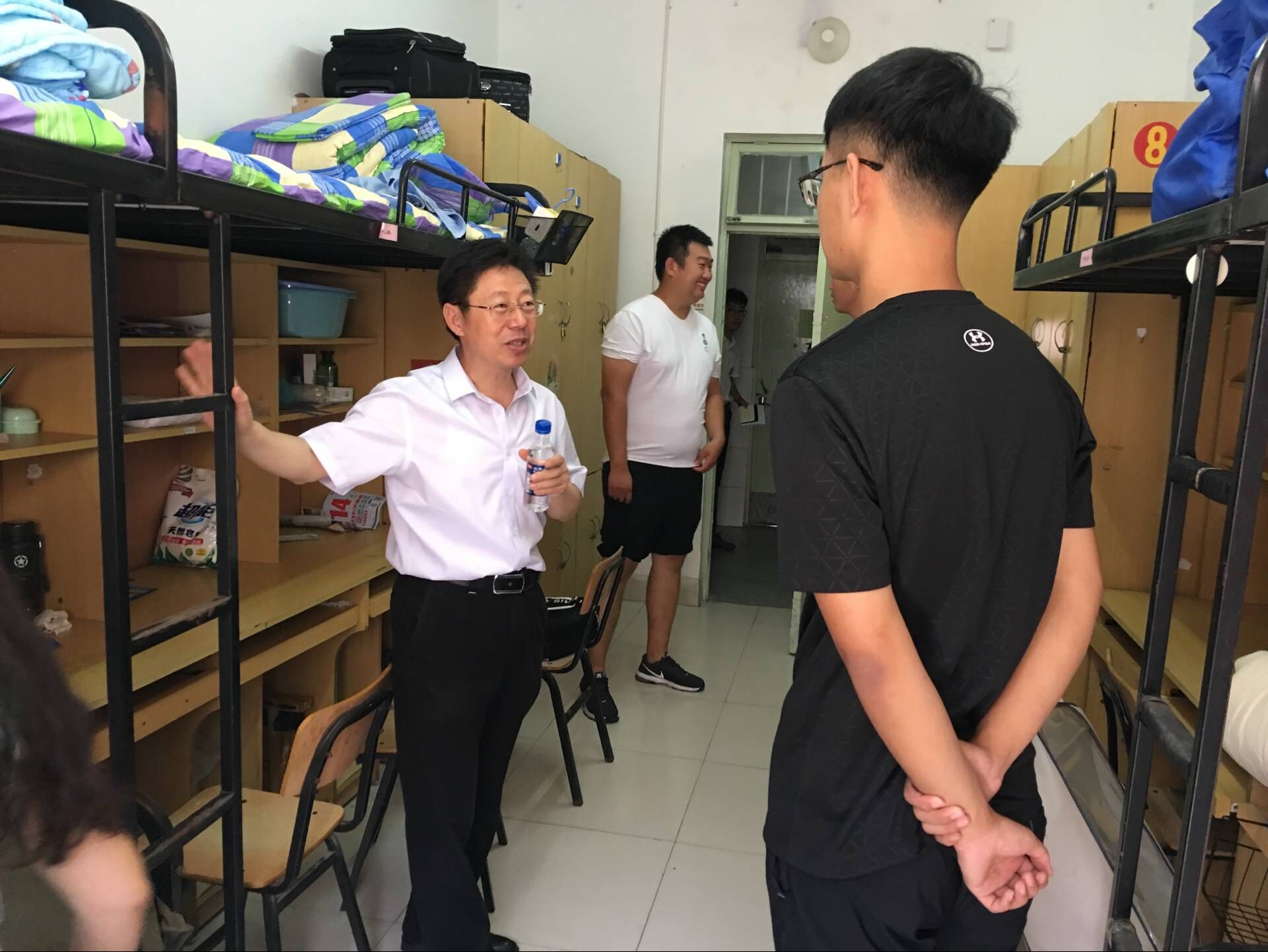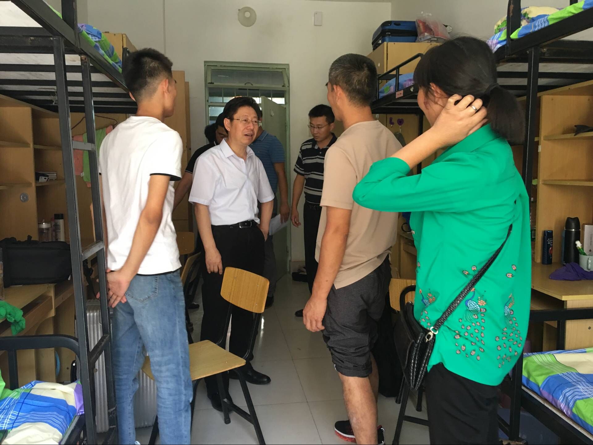 9月8日,山东科技大学2018级新生报到工作正如火如荼开展。上午,矿业捷报足球 院长谭云亮、党委副书记兼副院长穆玉兵、团委书记马鹤、辅导员宗彩建一行专程来到学生宿舍看望新生与家长。