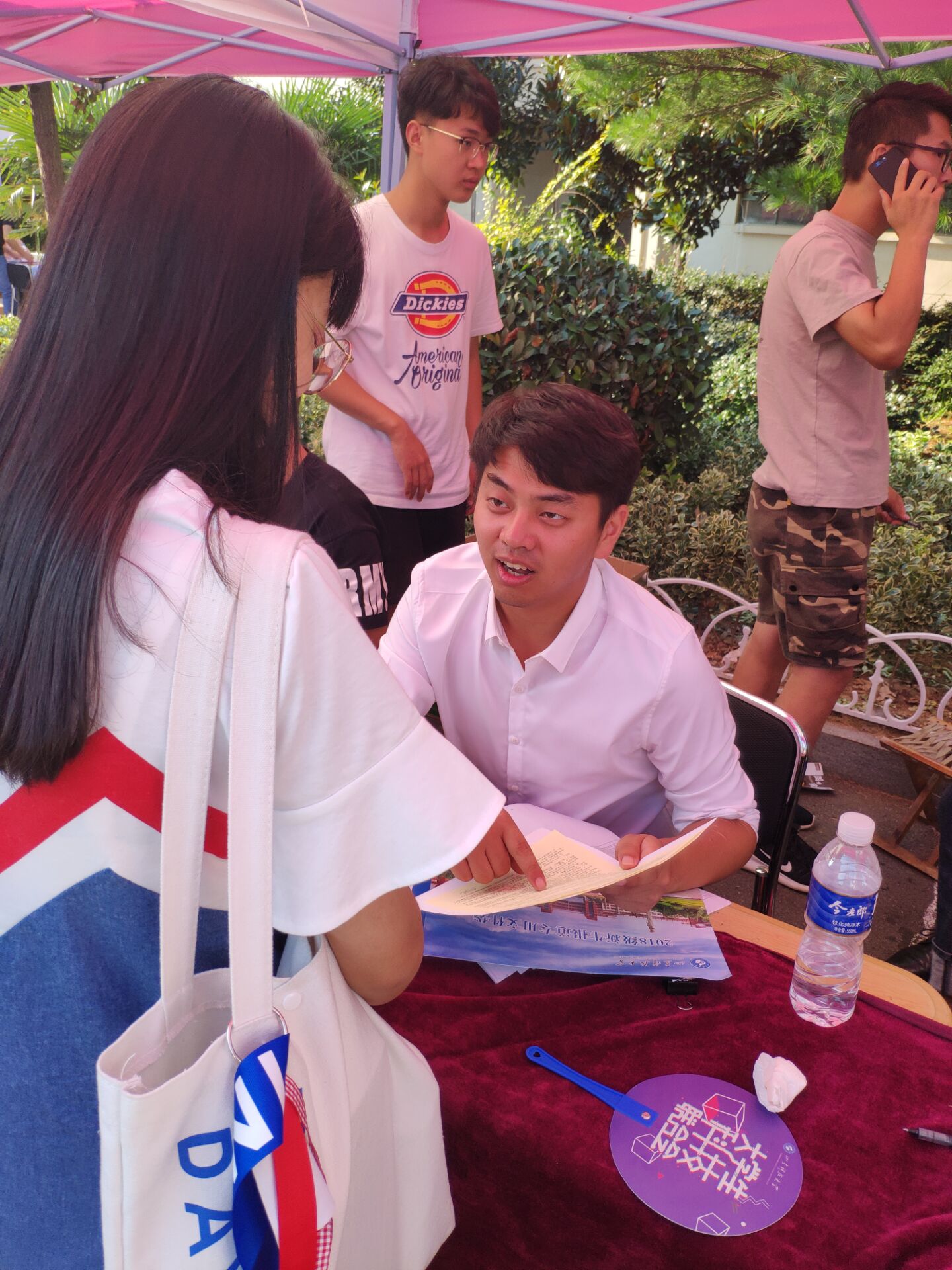 安全协会工作人员负责迎新现场饮水处、休息处的服务工作