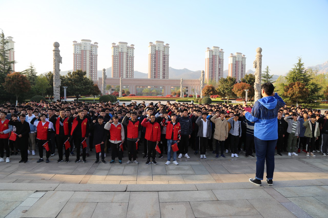 在泰山广场举行升旗仪式暨“传承五四志,激扬青春梦”红色主题活动。