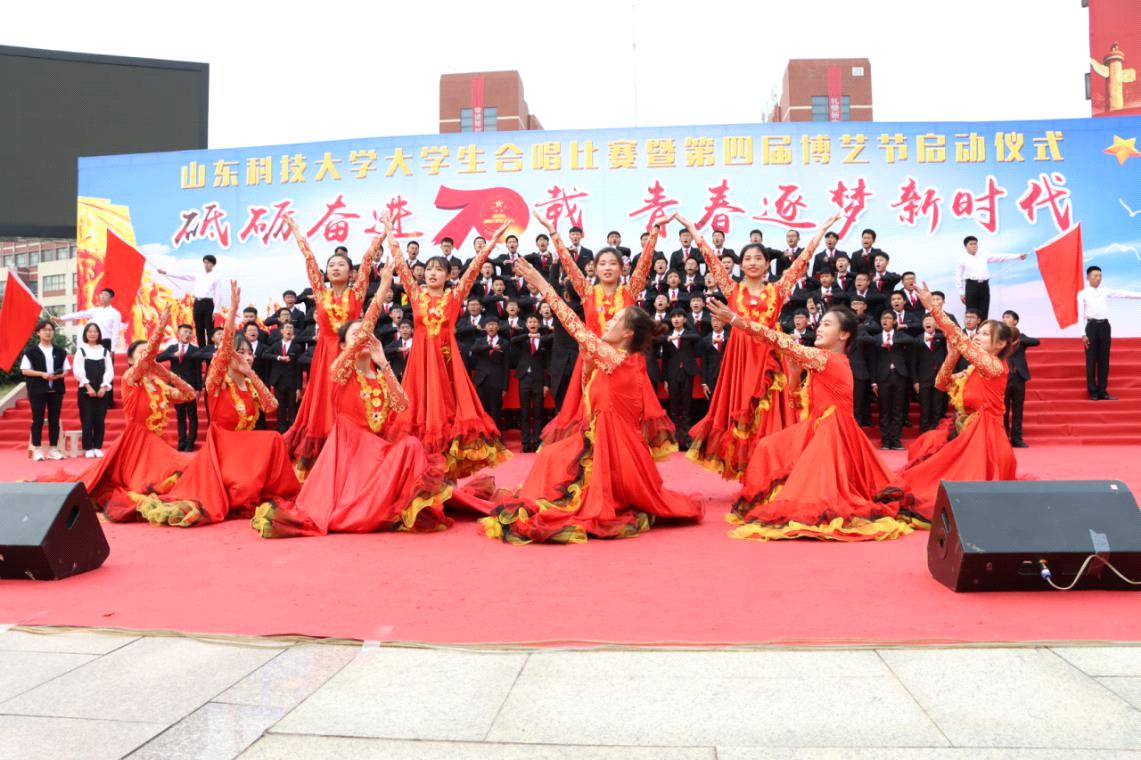 10月13日,“砥砺奋进70载,青春逐梦新时代”山东科技大学大学生合唱比赛暨第四届博艺节启动仪式在泰山广场隆重举行。矿业与安全工程捷报足球