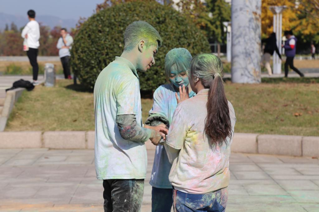 此次彩色跑活动全程4.5公里,以泰山广场为起点,沿途共设置十个站点,最后以泰山广场为终点。途经的各个站点,都有工作人员“驻守”。活动中,大家尽情地互相撒粉,如同打翻了调色盘,将五颜六色洒落到沿途各个角落,广场上、马路上欢声笑语不绝于耳。跑完全程,每个人都变成了彩色,每个人都是这片欢乐彩色王国中的主角!