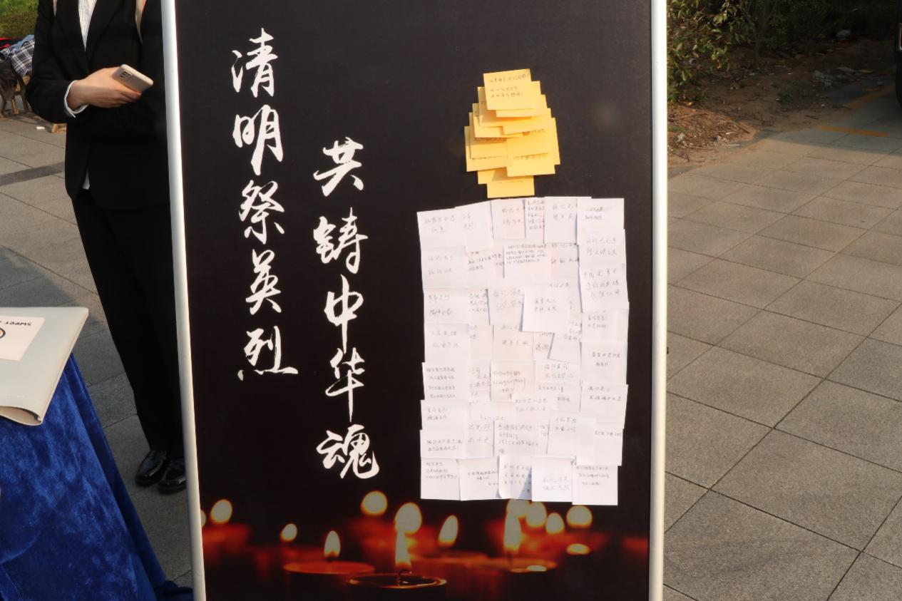 活动当天,工作人员现场准备信纸、便利贴、签字笔、展示板等物资。在庄严肃穆的气氛中,同学们用书信、绘画、手抄报、便利贴寄语等方式,表达了对革命先烈无限的思念和崇高的敬意。他们将寄语和书信按照“蜡烛”和“心形”的形式分别在展览板和工作桌上进行摆放展示,真挚地表达了新时代青年学生对革命先烈的缅怀之情,革命先烈是中华民族的脊梁、人民共和国的丰碑,将永远铭刻在我们心中。