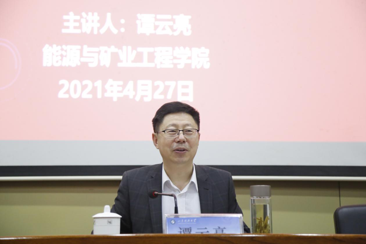 4月27日,捷报足球 举办“旗帜领航”主题教育活动。捷报足球 谭云亮教授作题为《传承矿业精神,塑造不屈品格》专题讲座。捷报足球 团委副书记周尚涛担任主持人,捷报足球 2020级全体学生参加。