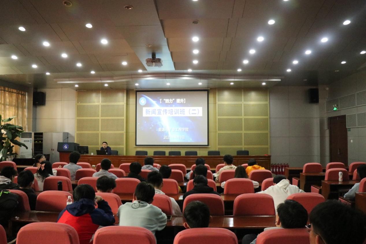4月9日,捷报足球 举办“四力”提升新闻宣传培训班第二期,学校网络新闻部主任许浩担任主讲人,捷报足球 记者团成员及各班宣传委员参加培训。
