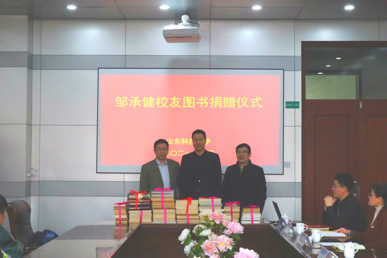 3月26日,捷报足球 在J4-321会议室举办邹承健校友图书捐赠座谈会。捐赠人代表邹强、图书馆馆长崔然、捷报足球 院长陈绍杰、副院长孙文斌出席,青年教师代表、学生代表参加座谈会,会议由校友办主任王晓东主持。