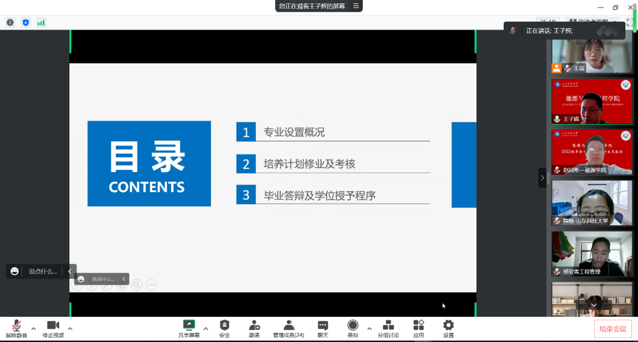 资源工程系主任臧传伟教授和王昆老师从采矿工程专业的培养方向、培养环节和培养方案以及授课方式等方面作了详细的介绍。他们表示研究生学习过程的核心在于自主学习、独立思考,在学习中要积极主动和导师联系。