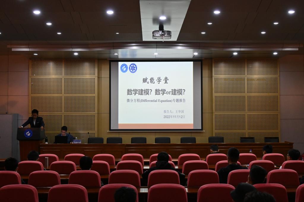王华国通过引入例题的方式,直观地向同学们演示了建模的大致流程,并讲解了如何进行简单建模等问题。他为同学们介绍了各大数学、物理竞赛的类型与时间,分享了自己关于数学建模竞赛的成功经验。在与同学们的互动交流中,王华国鼓励同学们努力学习建模知识,做到真正热爱数学建模,针对同学们关心的问题进行了深入交流。