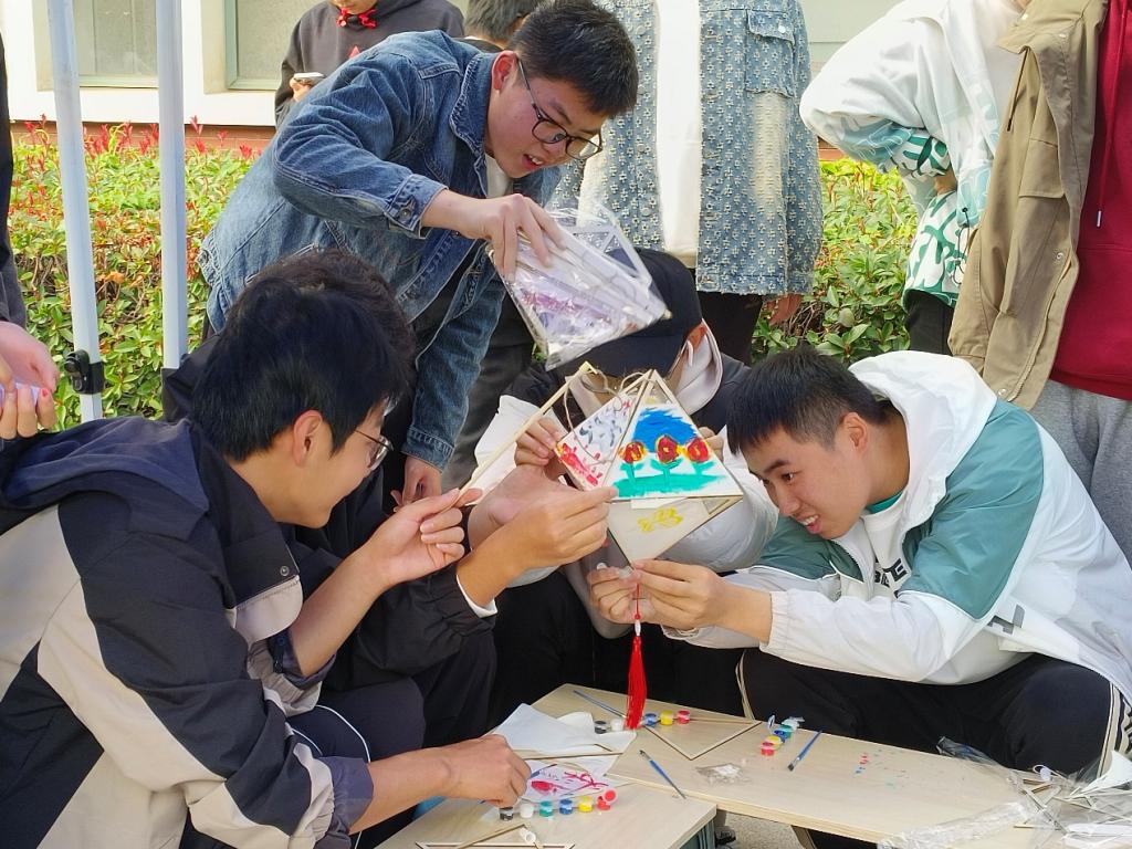 活动现场热闹非凡,欢声笑语此起彼伏。在花灯制作区域,同学们全神贯注地投入其中,桌子上摆满了制作材料和工具,五颜六色的花灯逐渐成形。猜灯谜区域更是人头攒动,同学们围在灯谜前,或独自思考,或相互讨论,猜对灯谜的欢呼声不断响起。