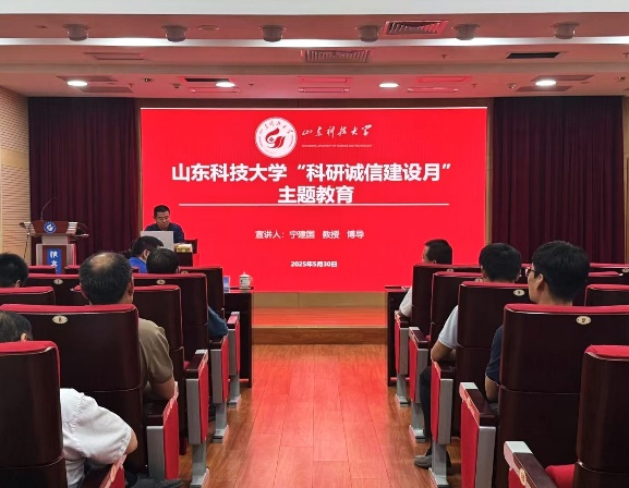 黄万朋向全院教职工介绍了此次活动的重要意义以及科研诚信建设月系列活动的总体要求;赵健以《科研诚信与科研安全》为题,向全院教师传达了国家和山东省对科研人员诚信建设工作的重要指示精神,要求老师们树立科技安全意识,构建安全底线思维,筑牢科技安全防线;孟凡斌对科研经费使用、报销过程中容易出现的问题以及存在的典型风险点进行了详细讲解,并对学校科研经费报销政策进行了解读;宁建国带领老师们详细学习了科技部、教育部下发的《科研失信行为调查处理规则》、《高等学校学术不端行为调查处理实施细则》等系列政策文件,并就科研失信行为典型案例进行了细致剖析。