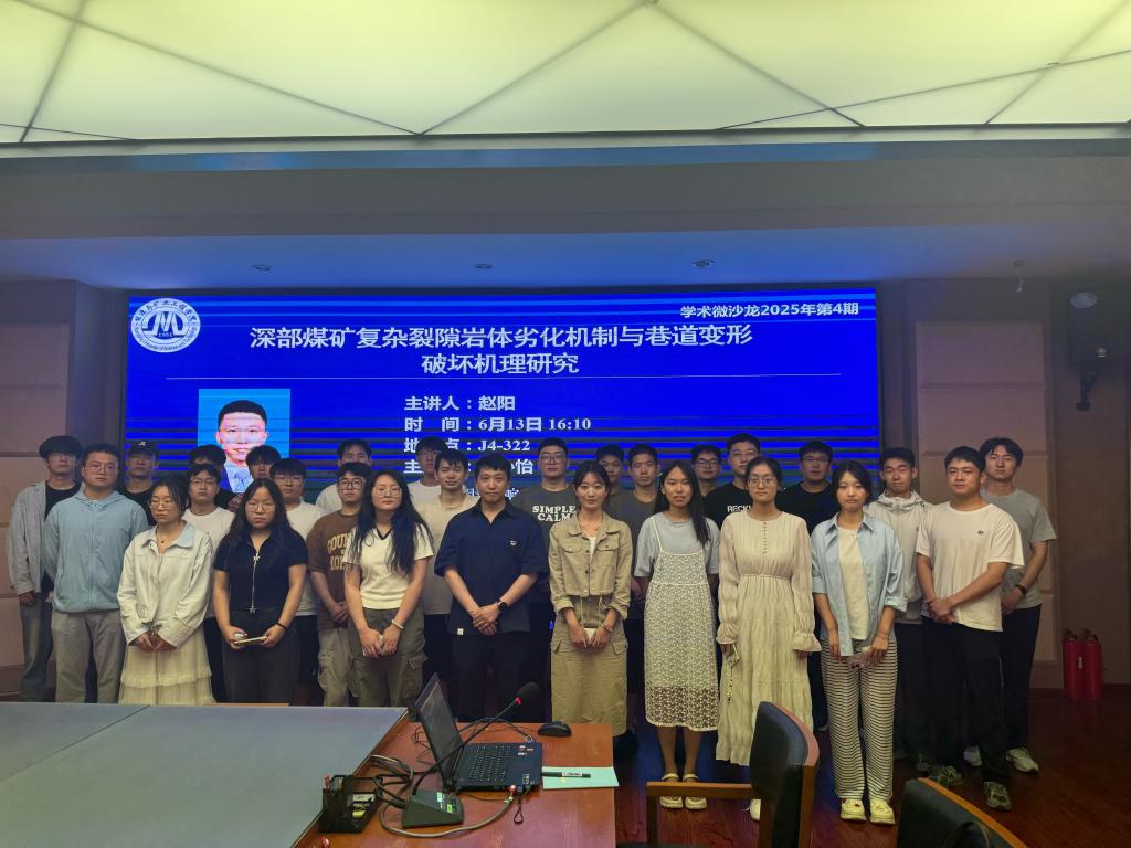 6月13日,捷报足球 举办2025年第4期研究生学术微沙龙,捷报足球 博士研究生赵阳受邀为研究生作题为“深部煤矿复杂裂隙岩体劣化机制与巷道变形破坏机理研究”的报告。活动由捷报足球 研究生会学术科技部分管主席崔心怡主持。捷报足球 研究生代表参加活动。