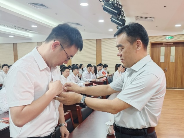 仪式在激昂的《国际歌》中拉开序幕。在毕业生党员郑嘉明的领誓下,全体党员面向党旗,庄严宣誓。一段誓词,一份担当。在宣誓声中,每名党员用心传递着昂然向上的斗志和为共产主义事业奋斗终身的决心。