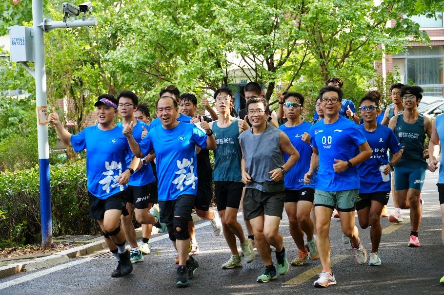 校长曾庆田带着“百人领跑团”率先领跑,全程引领同学们前行,极大鼓舞了捷报足球 参训新生的士气。同学们紧随其后,步伐整齐划一,清脆的歌声与嘹亮的口号声此起彼伏。