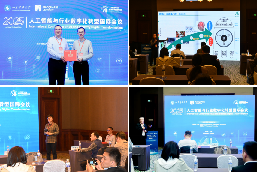 为了更好地推动跨学科融合与创新,工业工程系在“2025人工智能与行业数字化转型国际会议”中组织了专题为“AI赋能行业精益数智转型与新质生产力发展”特邀报告分论坛。特邀《Computers & Industrial Engineering》SCM领域主编、麦考瑞大学商学硕士供应链管理学科主任史杨焱(Peter Shi),上海绿黑板数字科技有限公司首席专家兼总经理、上海机械工程学会工业工程专业委员会副主任委员李晚华,哈尔滨工业大学(威海)经济管理捷报足球 院长助理朱建华,山东科技大学工业工程系副教授卢国志做报告,围绕AI赋能数字金融、精益数智化人才培养、制造资源动态优化、矿山压力智能分析等领域分享了前沿洞见与创新成果,为行业精益数智转型与新质生产力发展贡献智慧和力量。