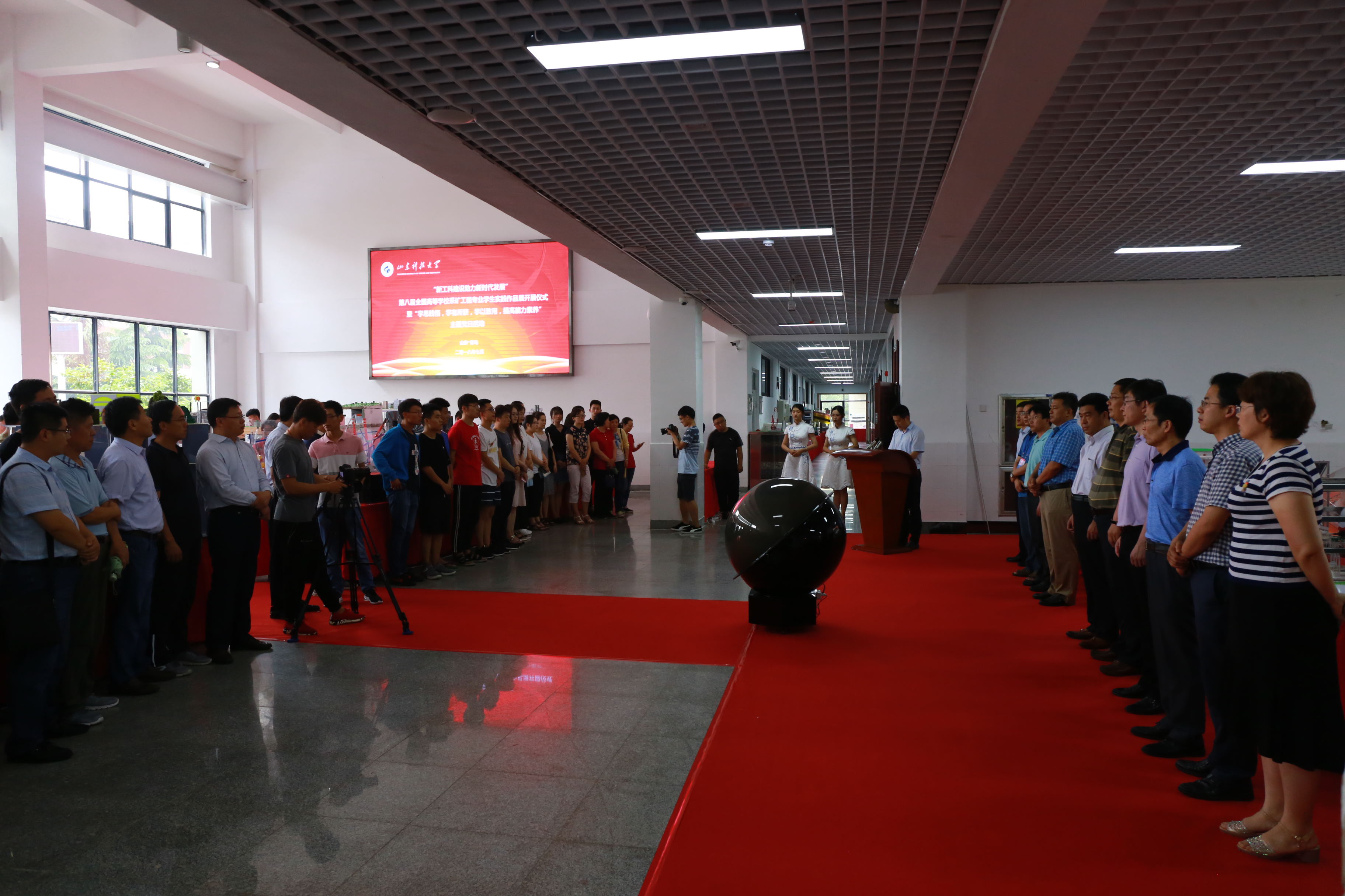 仪式结束后,与会领导参观了第八届全国高等学校采矿工程专业学生实践作品展、矿业工程国家级实验教学示范中心及山东省骨干学科力学实验教学中心。