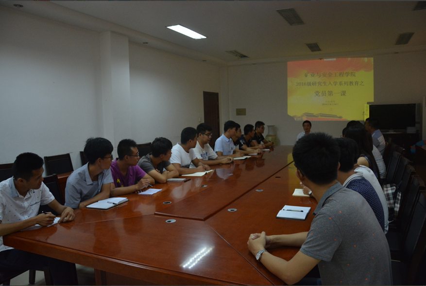 党支部建设进行了简要的介绍,并结合矿院优良的传统对学生党员提出了几点要求:一是要结合“两学一做”的理论政策,提高自身政治觉悟,努力践行有理想信念、有道德情操、有扎实知识、有仁爱之心的“四有”学生,做讲政治、有信念,讲规矩、有纪律,讲道德、有品行,讲奉献、有作为的合格党员;二是要提高对自我的要求,秉承“惟真求新”的校训,树立党员的先锋模范作用,做他人身边的榜样,共同促进矿院学生工作的发展;三是要时刻牢记全心全意为同学服务的宗旨,这既是每个党员对自身党性的最低要求,也是其终生追求的最高目标,要内化于心,外化于行,时刻牢记自己是一名共产党员,切实践行为班级同学服务的宗旨;四是要加强理论学习,不断深化党内教育,遵守党的纪律,按时参加党内民主生活,服从组织的安排,做一名合格党员。