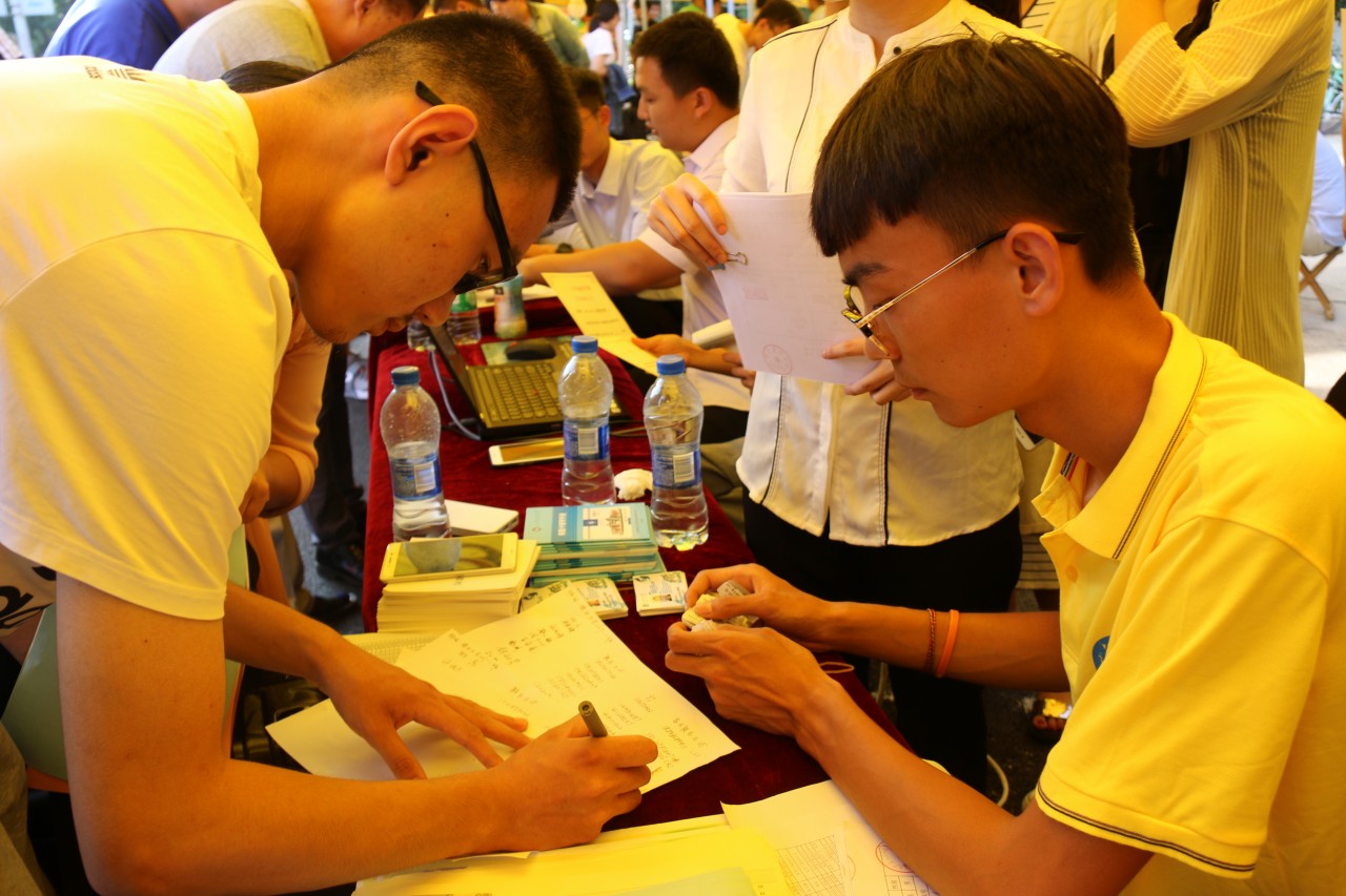报到处红色的欢迎条幅在阳光下熠熠生辉。报到确认、领取校园卡、缴费情况确认和领取住宿通知单,新生们在学长学姐的耐心引导下按部就班办理各项手续。整个报到处,人头涌动但秩序井然,信任与关怀在志愿者、新生和家长中传递。报到处还专设了家长休息处和饮水处,并安排志愿者为家长服务,让刚踏入大学校园的新生们感受到了家的温暖。