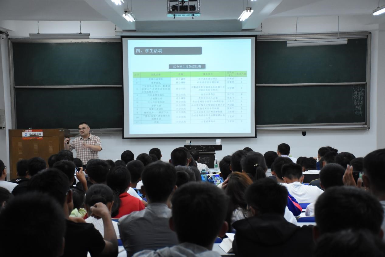 各专业概况以及安全工程专业的发展优势,鼓励同学们制定合理的学习计划及未来发展规划。工业工程系副主任贾顺以幽默诙谐的语言对工业工程学科建设、实习实践、学生就业及行业发展现状做了详细阐述。理论与应用力学系党支部书记、副主任赵增辉则强调了知识与能力同步增长的重要性,呼吁同学们努力吸收学科先进知识,走出自我封闭。