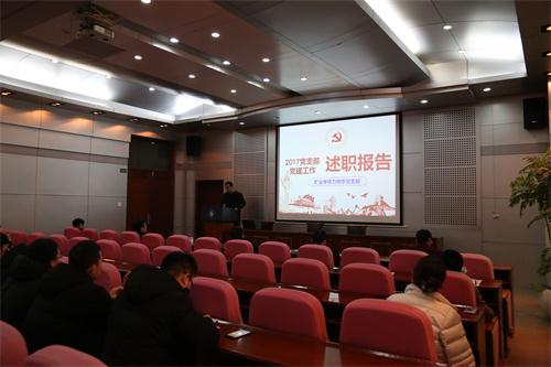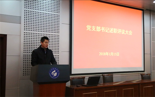 1月15日下午,矿业捷报足球 组织召开2017年度党支部书记抓党建现场述职评议会,党委、学校办公室副主任庄兴华到会指导,捷报足球 领导班子成员、各科室负责人、各党支部书记、系主任及师生代表参加了会议,会议由院党委书记梁赛江主持。
