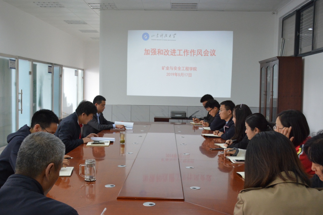 5月17日,矿业捷报足球 在S1-226召开加强和改进工作作风会议。捷报足球 党委书记董桂刚、副书记兼副院长穆玉兵,党政办、教科办、团委、重点实验室等各部门专职管理人员参加会议。