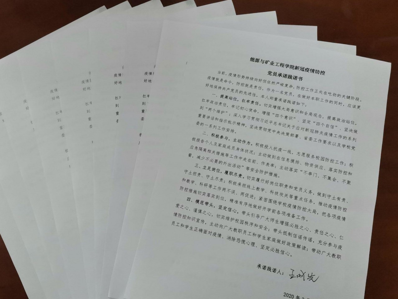 党委结合疫情防控工作实际,组织在全院教工党员中开展承诺践诺活动,誓言与疫情战斗到底。全体教工党员郑重践诺承诺如下: