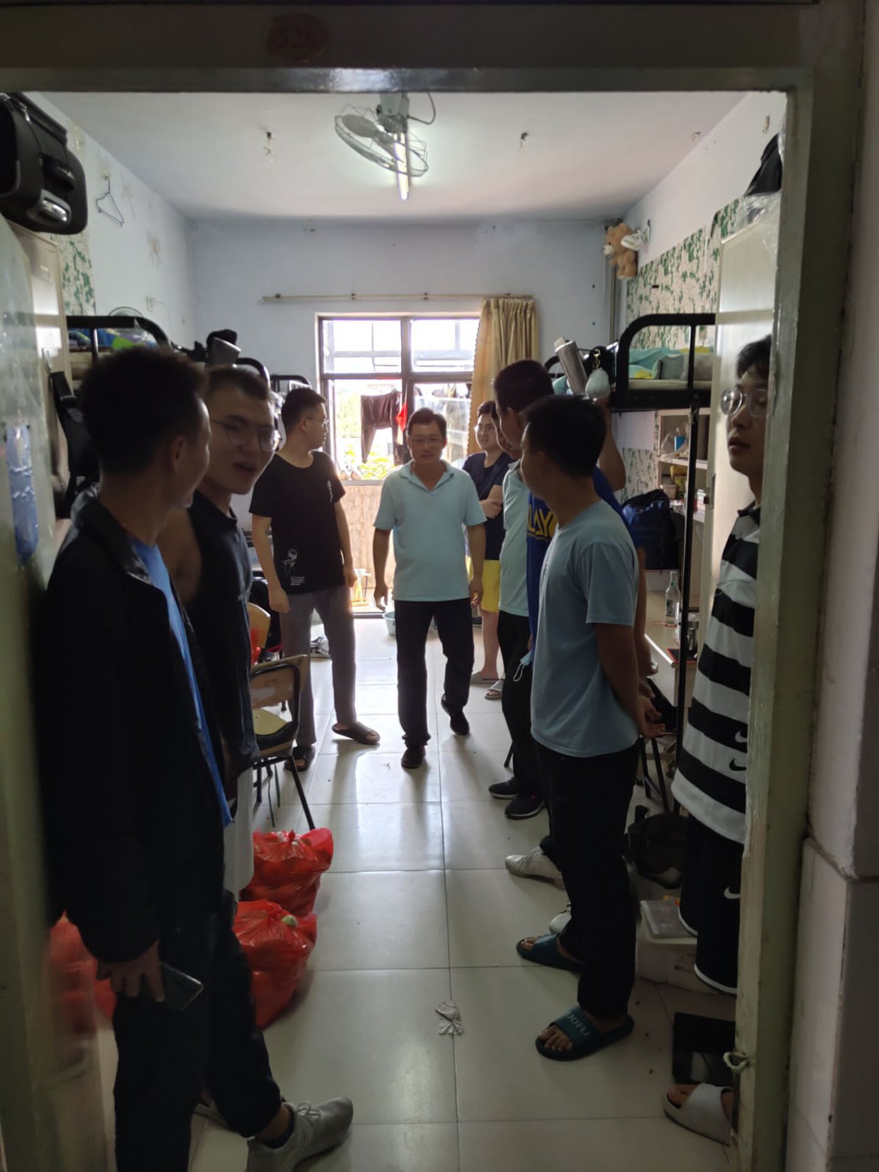 高地晚会结束后,捷报足球 党委副书记兼副院长许琳、团委书记周尚涛与辅导员老师一起,深入学生公寓,了解同学们日常起居情况,并对大家致以节日的问候和中秋的祝福。